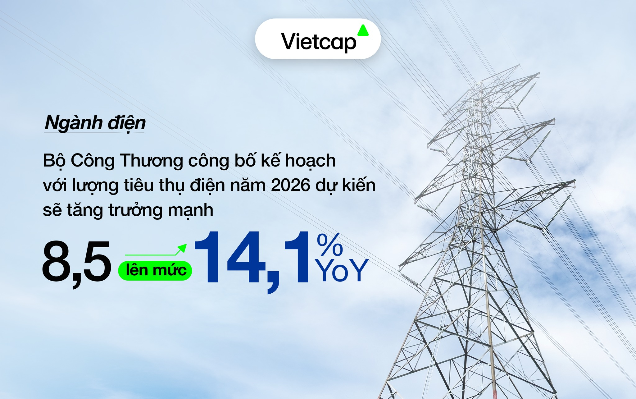 Bộ Công Thương công bố kế hoạch với lượng tiêu thụ điện năm 2026 dự kiến sẽ tăng trưởng mạnh từ mức 8,5% lên mức 14,1% so với cùng kỳ